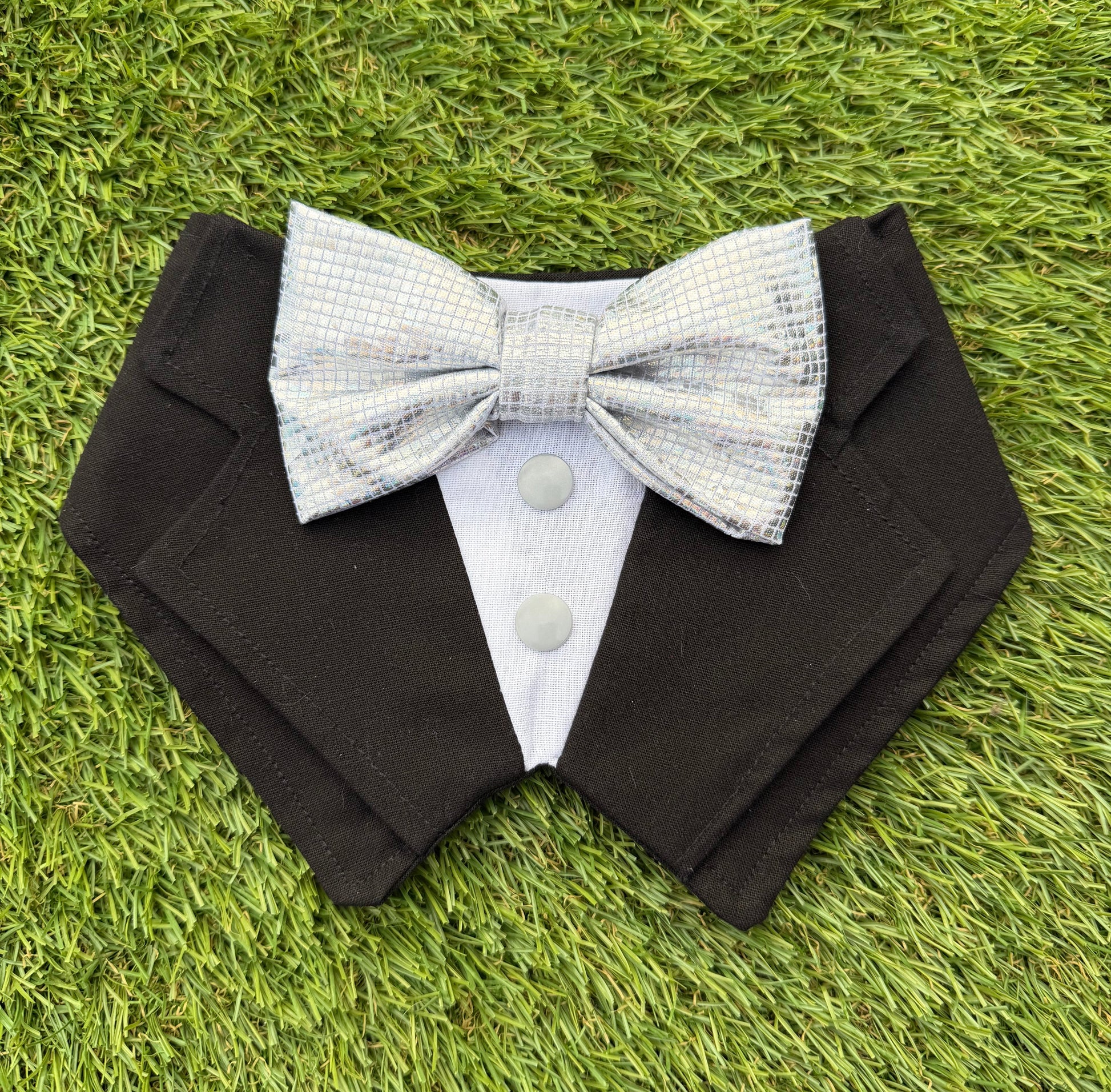 Tuxdanna - Plain Black Tuxdanna with Silver Bow Tie